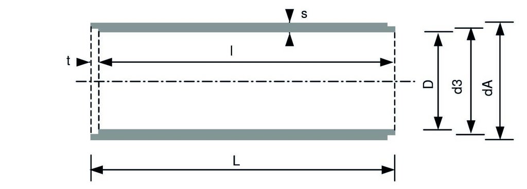 | Nenn- weite mm | Bau- länge l m | Wand- stärke s mm | Außen-ø da mm | Gewicht pro Rohr ca. kg |