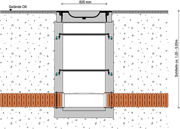 - Der neue Kompaktschacht für Regen- und Schmutzwasserkanäle im Tief- und Straßenbau mit optimalem Zugang für Kontrolle und Spülung.