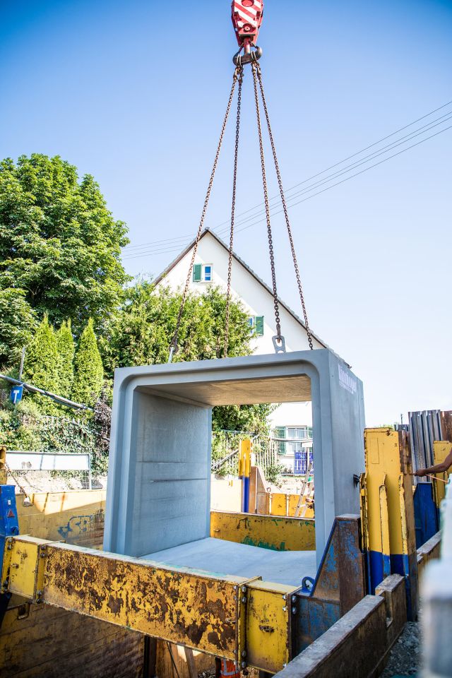 - Kanal Baulänge 45 m aus Rechteckprofilen mit V-Sohle als Trockenwetterabfluss