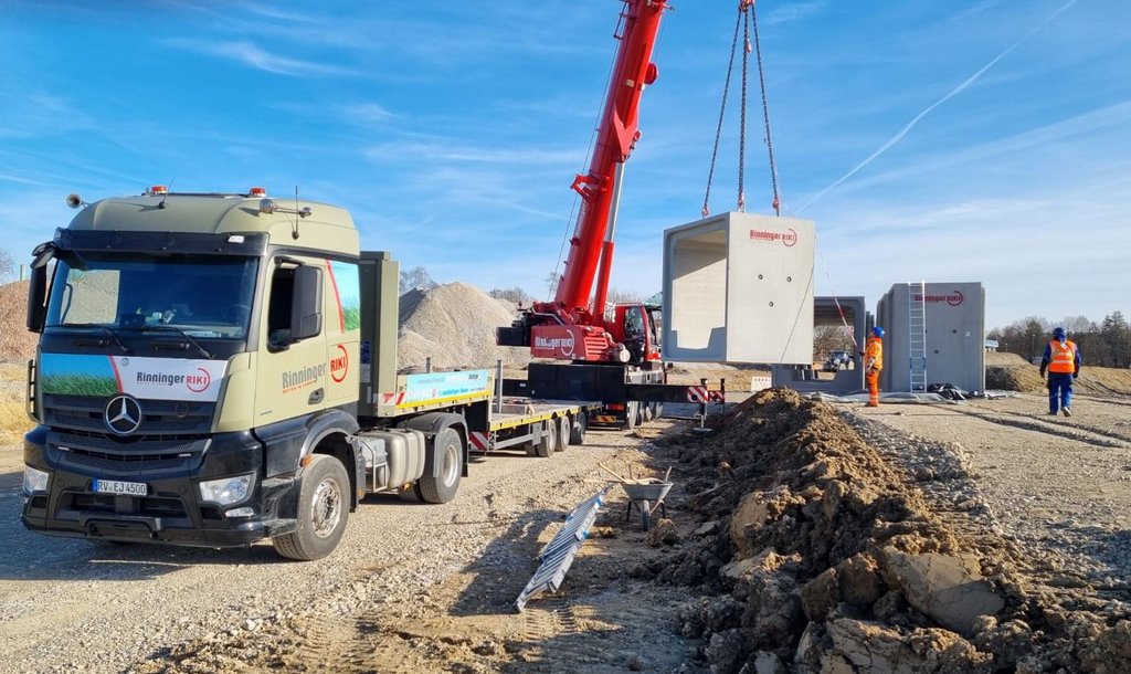 - Aufgrund Bauteilabmessungen und Gewicht waren für alle Elemente Sondertransporte erforderlich