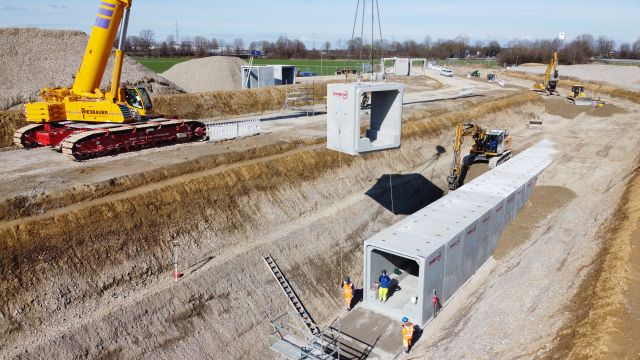 - Lieferung von 170 Stahlbeton-Rechteckprofile b/h = 2,60 / 2,85 m i.L. mit asymetrischem Trockenwetterrinne zum Einsatz eines Wärmetauschers für thermische Abwassernutzung